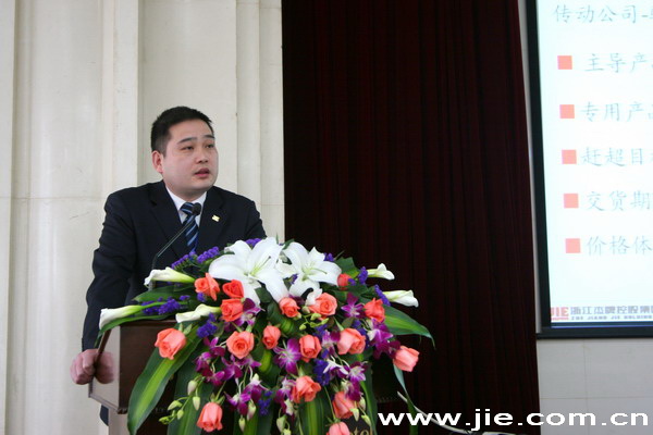 杭州杰牌傳動(dòng)科技有限公司總經(jīng)理陸建江先生在杰牌傳動(dòng)發(fā)展論壇上作主題演講