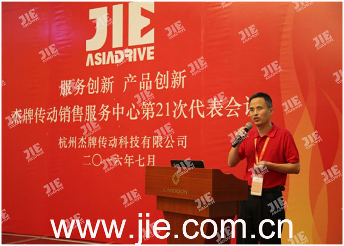2016年07月07-09日,服務(wù)創(chuàng)新 產(chǎn)品創(chuàng)新-杰牌傳動(dòng)銷售服務(wù)中心第21次代表會(huì)議在浙江桐廬順利召開,會(huì)議通過“主題報(bào)告、業(yè)績通報(bào)、信息發(fā)布、主題演講、杰牌毅行”等系列活動(dòng)為杰牌傳動(dòng)銷售服務(wù)中心推進(jìn)“3355“工作奠定了基礎(chǔ)。
